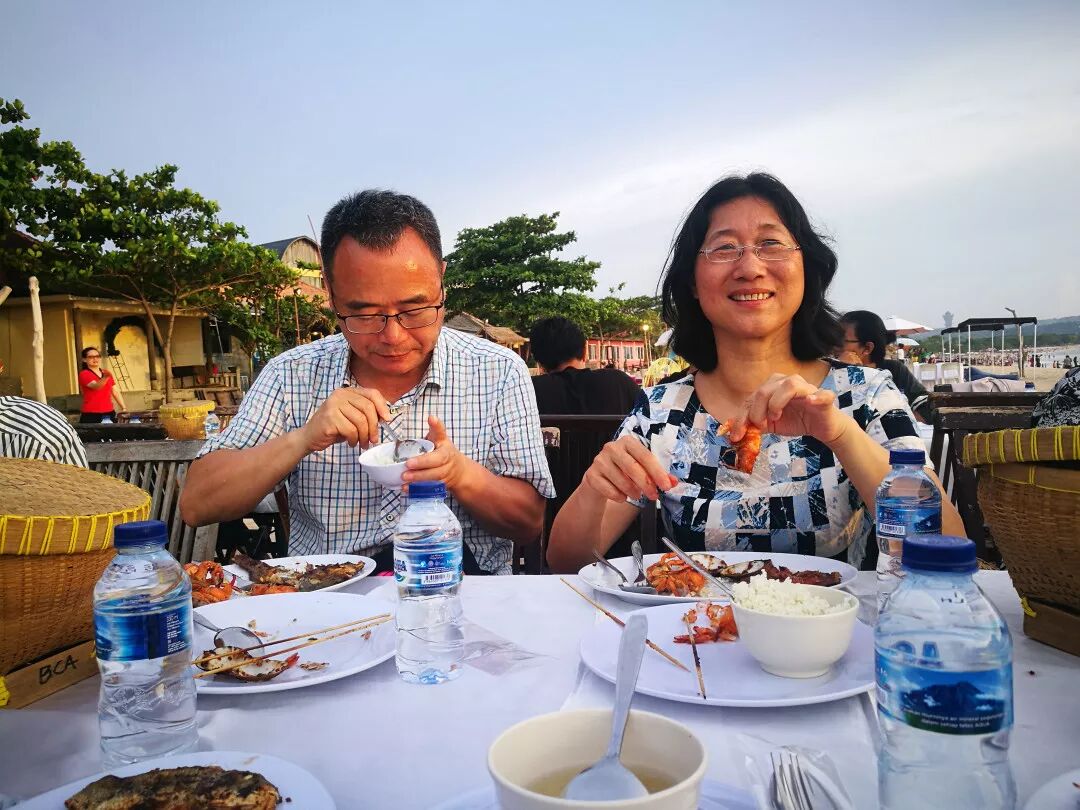 在金巴兰海滩,我们遇到几个中国团,